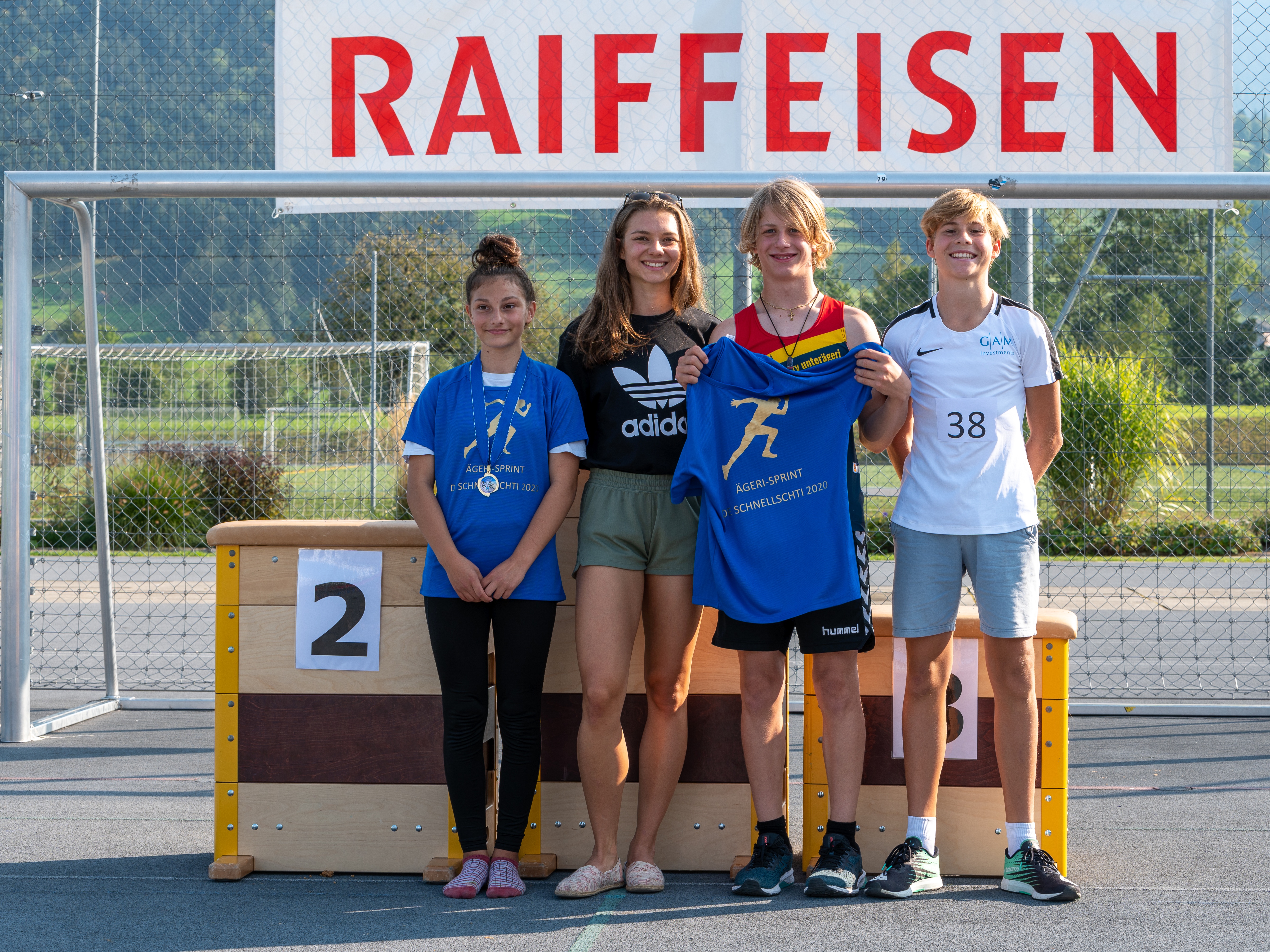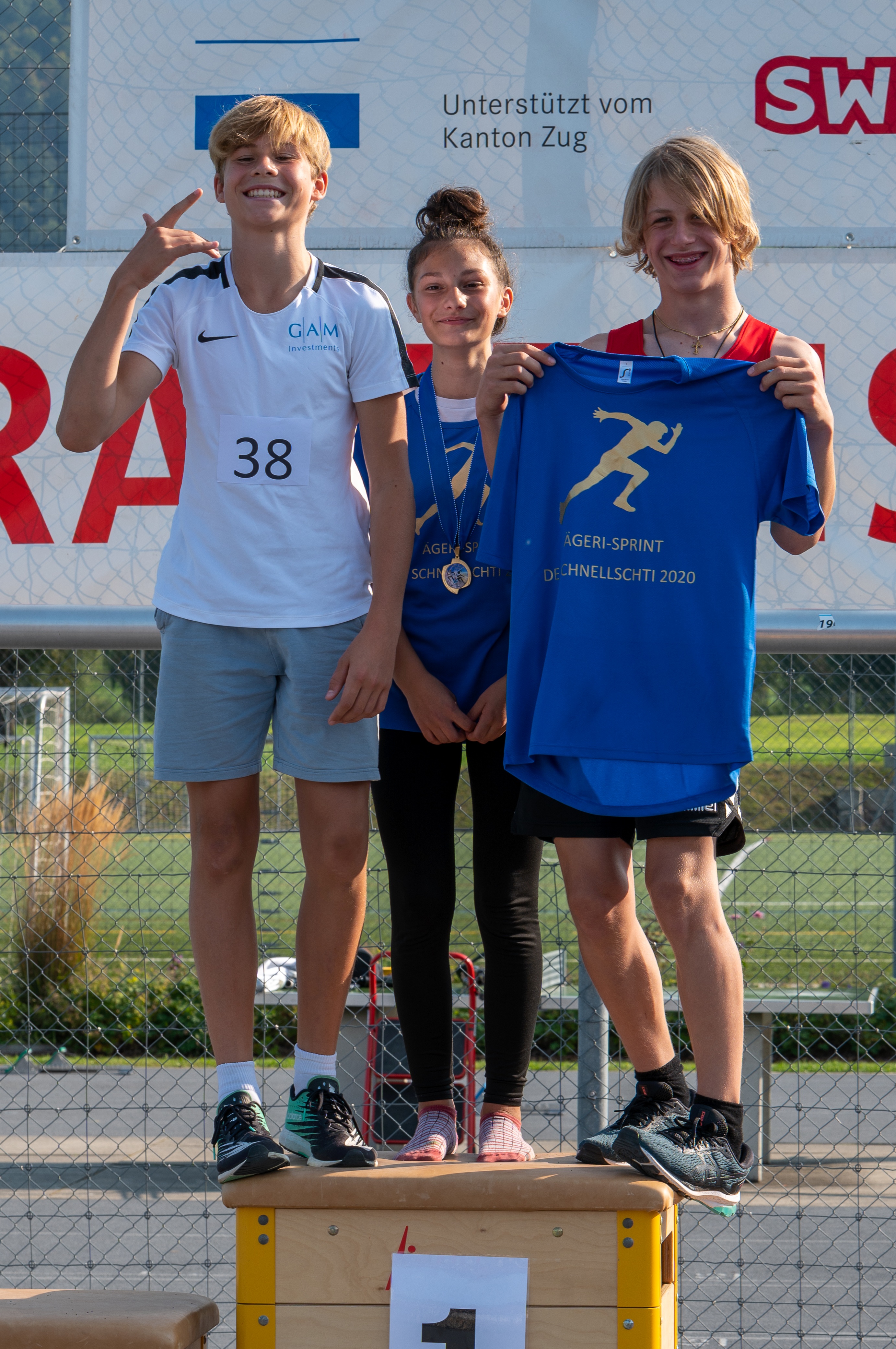 Siegerin der Mädchen ist Leila Zeller aus Unterägeri. Bei den Jungs waren Josh Weston und Janis Lüthold zeitgleich und dürfen sich je über ein T-Shirt Ägeri-Sprint de Schnellschti 2020 freuen.